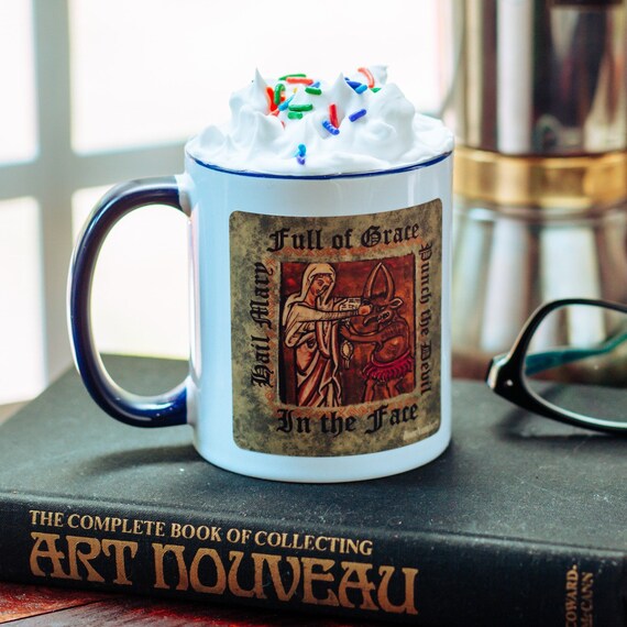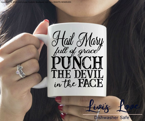 Hail Mary Full Of Grace Punch The Devil In The Face Mug - Whoever spreads devotion to my holy face is saved.